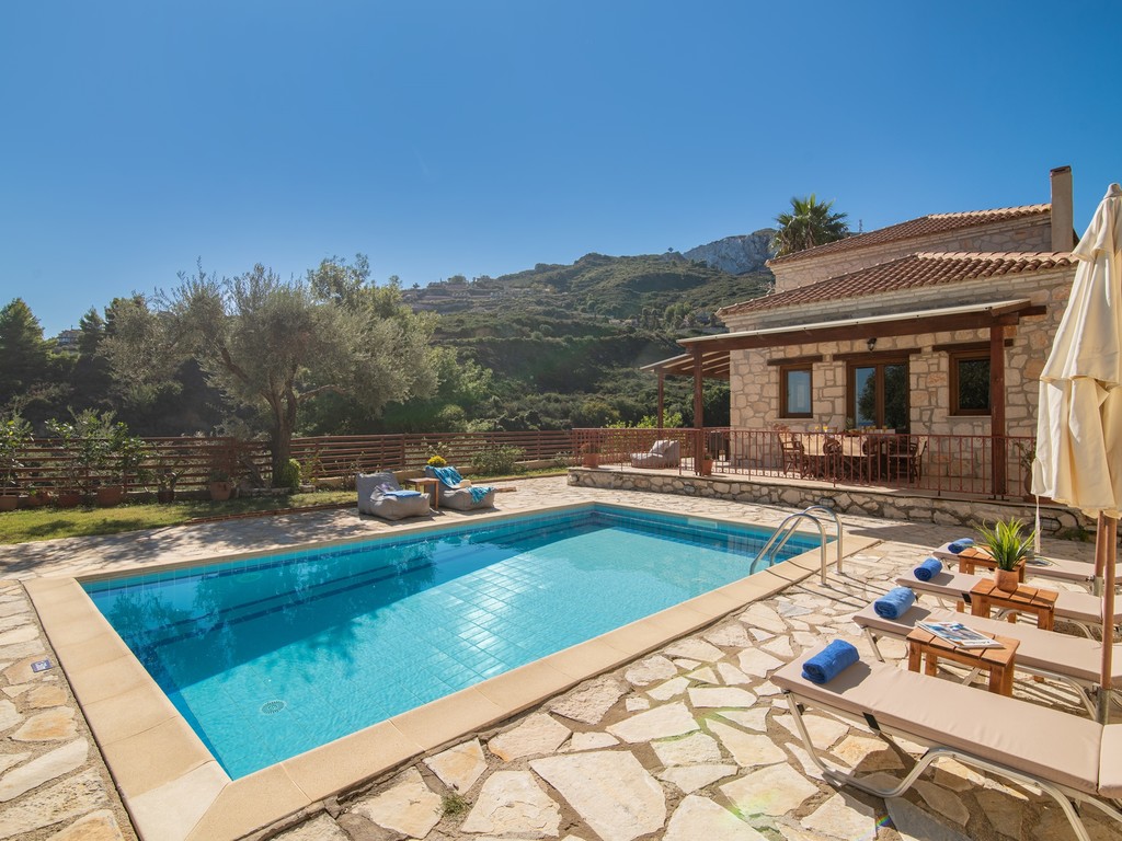 Elegance Villas is a complex of two private traditional pool villas: Villa Andon & Villa Yiota. Each of the two villas has 3 bedrooms and bright, spacious interiors. Situated amongst beautiful flora in the countryside and offering glimpses over the Ionian Sea to the Greek mainland; an ideal base from which to explore the picturesque Vasilikos area with its long sandy beaches, while being just a few minutes drive to Zante town, Argassi and Laganas/Kalamaki areas.