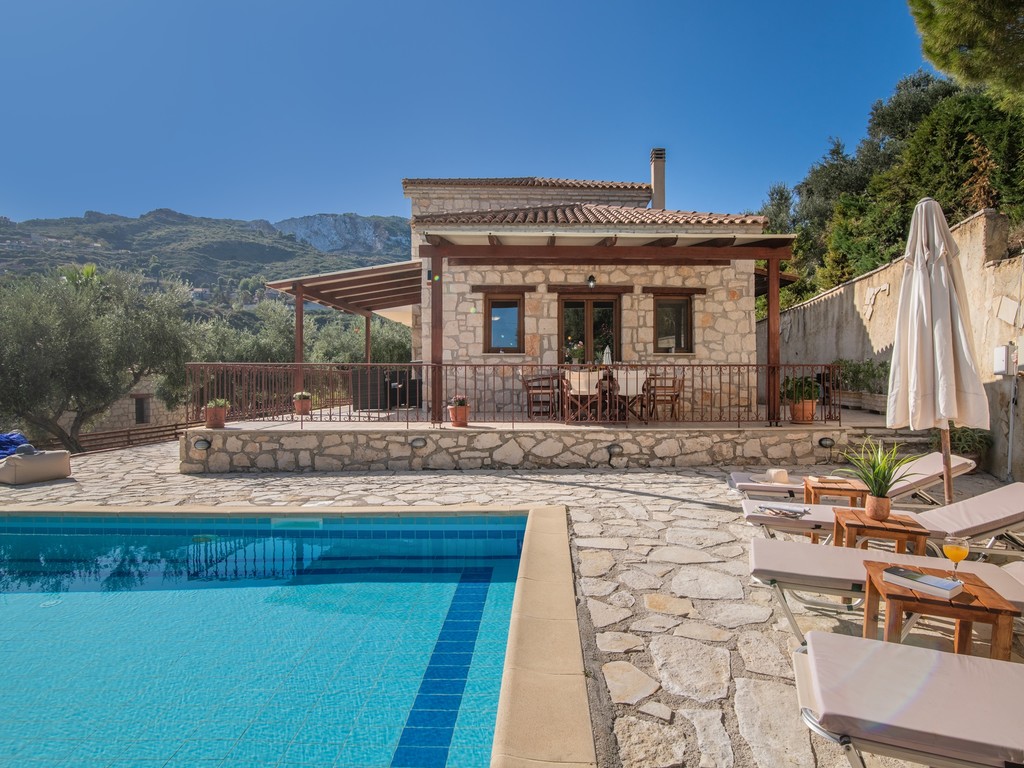 Villa Yiota is a traditional 3 bedroom sea view villa, Zakynthian stone villa set in a beautiful countryside location and offering glimpses over the Ionian Sea to the Greek mainland. This villa has bright, spacious interiors and its own private pool set amongst beautiful flora. An ideal base from which to explore the picturesque Vasilikos with its long sandy beaches and traditional tavernas to the south, and all the amenities of the resort of Argasi to the north. With Zante Town, only 5 km away.